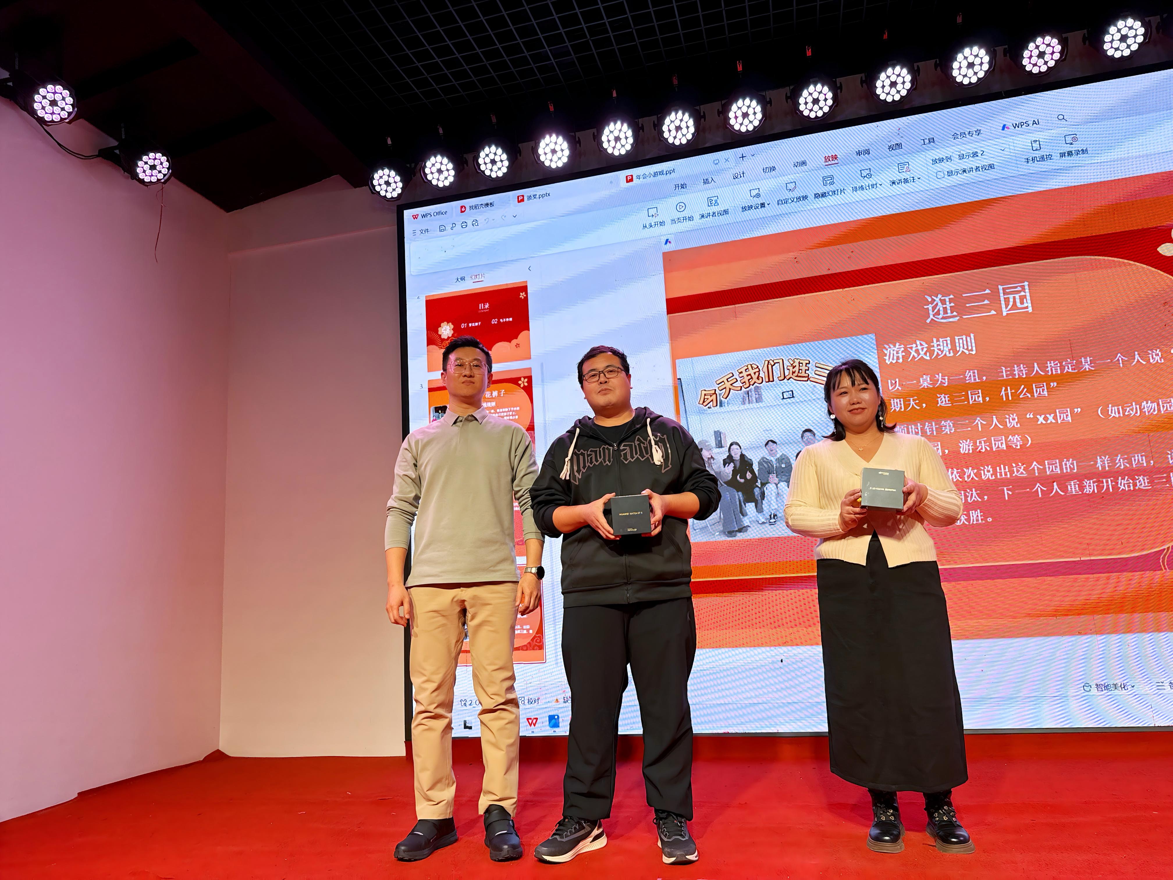 年会的抽奖环节更是惊喜连连。随着一份份精美奖品陆续揭晓,现场欢呼声此起彼伏。幸运与祝福在每一个人之间传递,也将年会的欢乐氛围点缀得更加热烈。